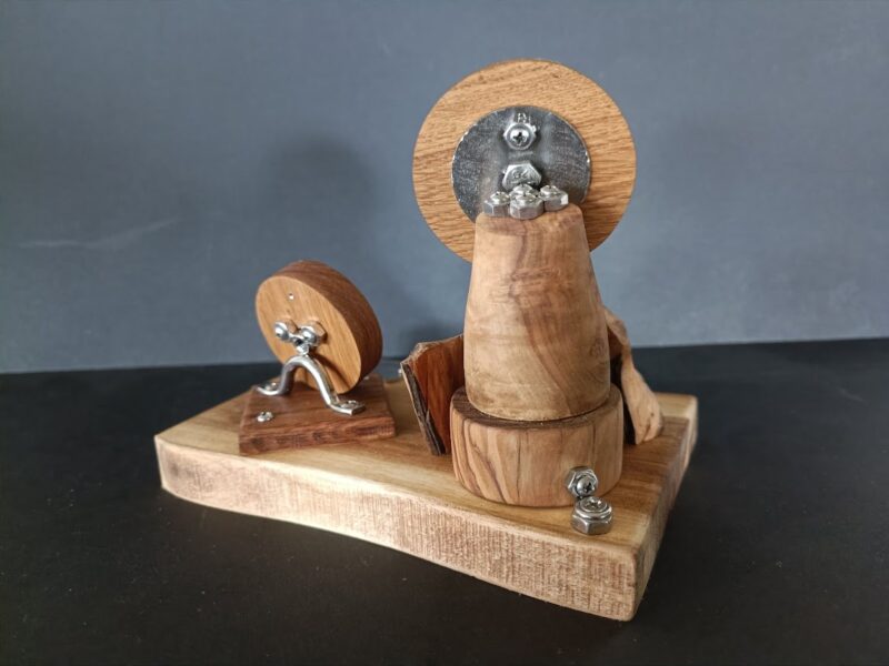 Ručno izrađena skulptura u kombinaciji drva (hrast,bagrem) i varenih elemenata od oplemenjenog čelika. Garantiramo da je svaka skulptura jedinstveni ručni rad Dante’s-a.
