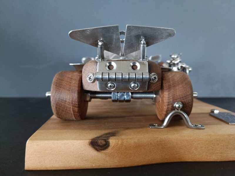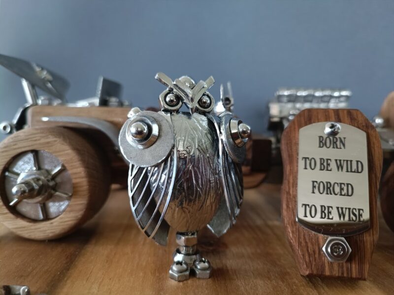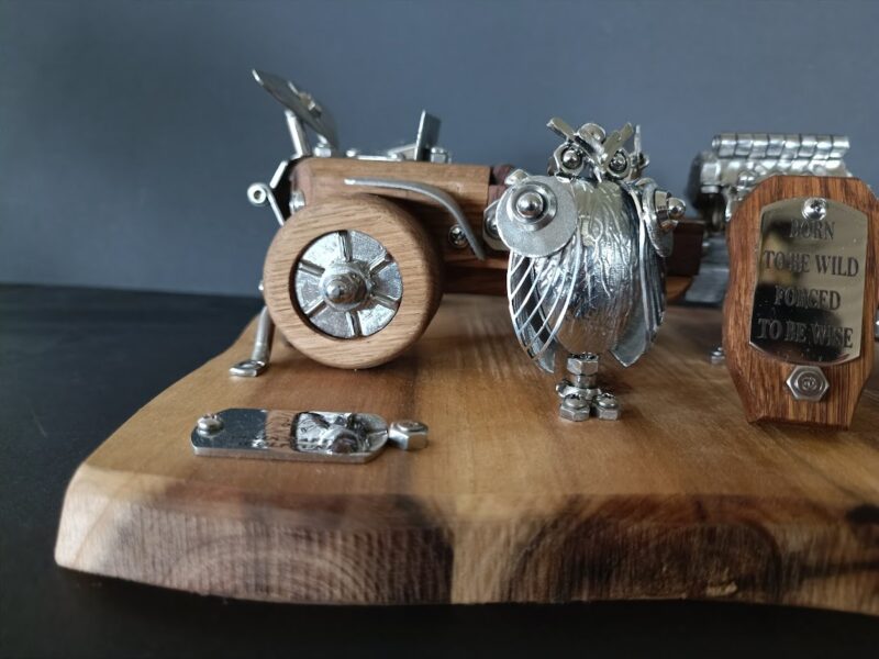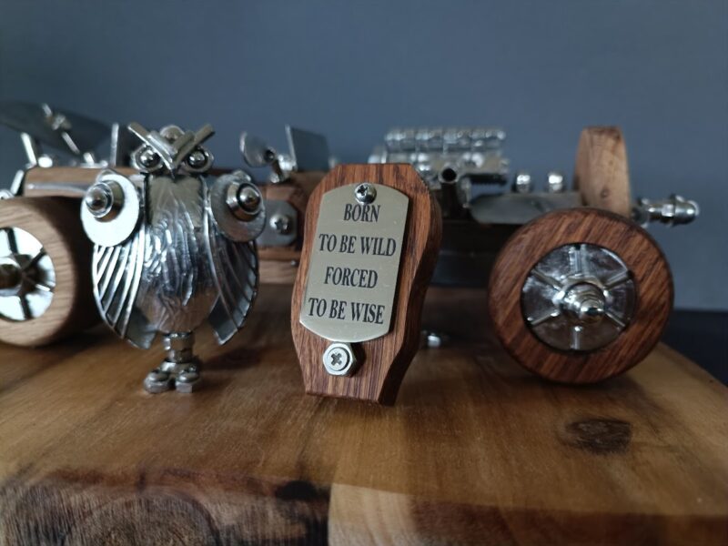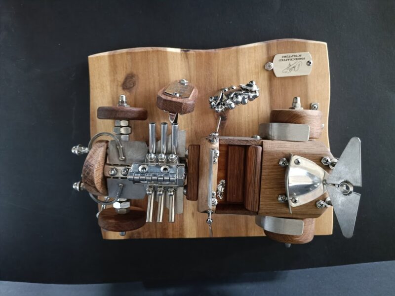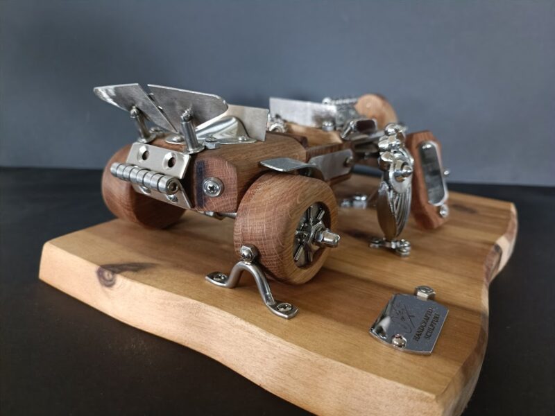 Ručno izrađena skulptura u kombinaciji drva (hrast,bagrem) i varenih elemenata od oplemenjenog čelika. Garantiramo da je svaka skulptura jedinstveni ručni rad Dante’s-a.